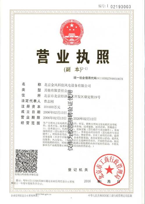 企业愿景:金风科技致力于成为国际化的清洁能源和节能环保整体解决方案供应商。